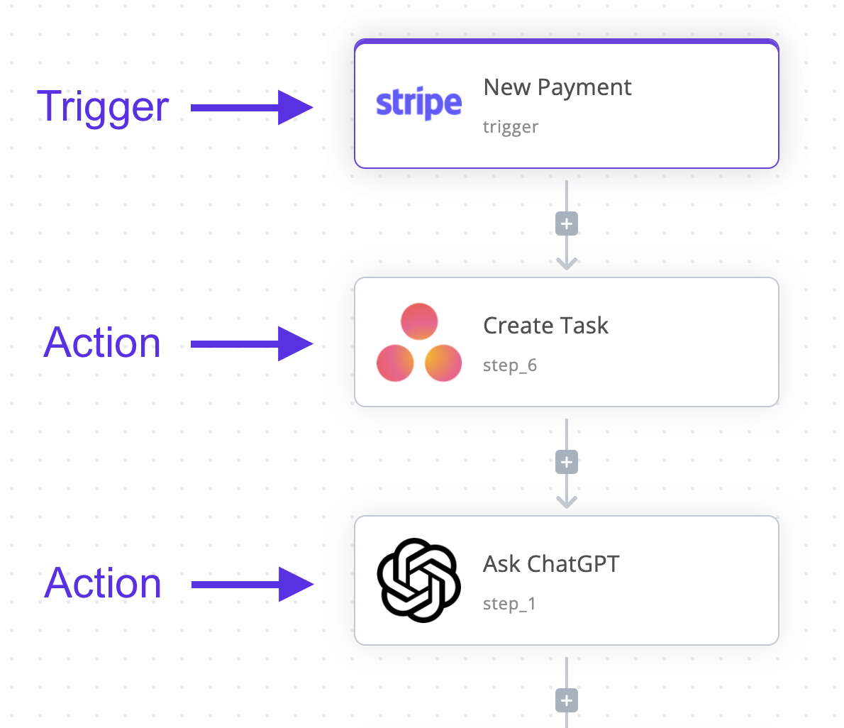 Un flujo en BeepCall.ai consta de dos partes principales: disparador y acciones.